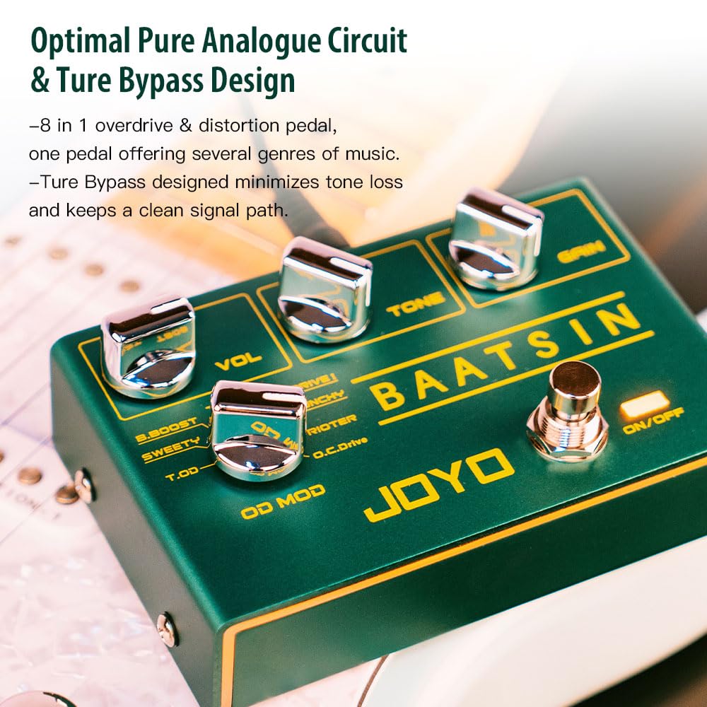 - JOYO Baatsin 8 in 1 overdrive & distortion pedal, picked 8 classic overdrive and distortion sounds after we studied many guitarists' great preference.